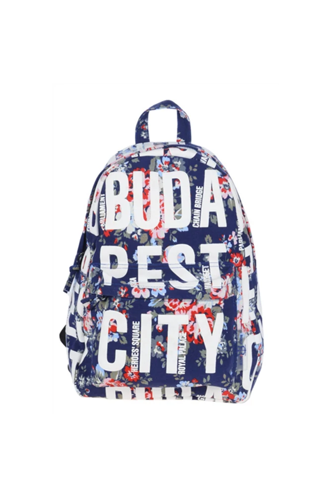 A Budapest mintás hátizsák széles pántja kényelmes viseletet biztosít, mely állítható. Cipzárral összezárható.