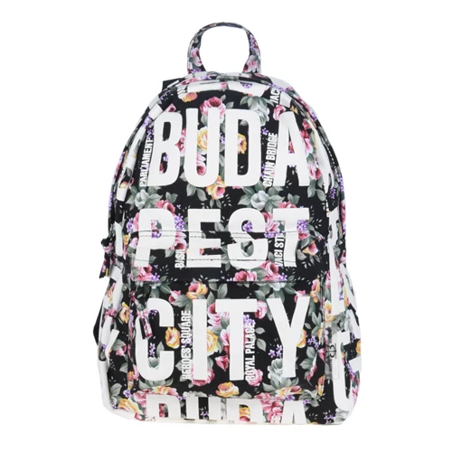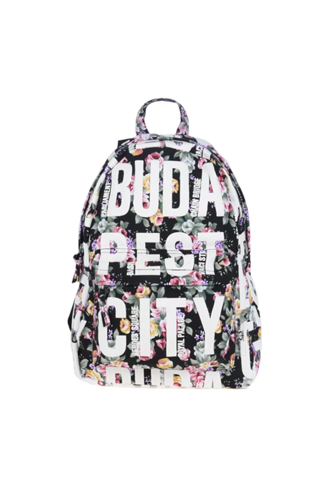 A Budapest mintás hátizsák széles pántja kényelmes viseletet biztosít, mely állítható. Cipzárral összezárható.