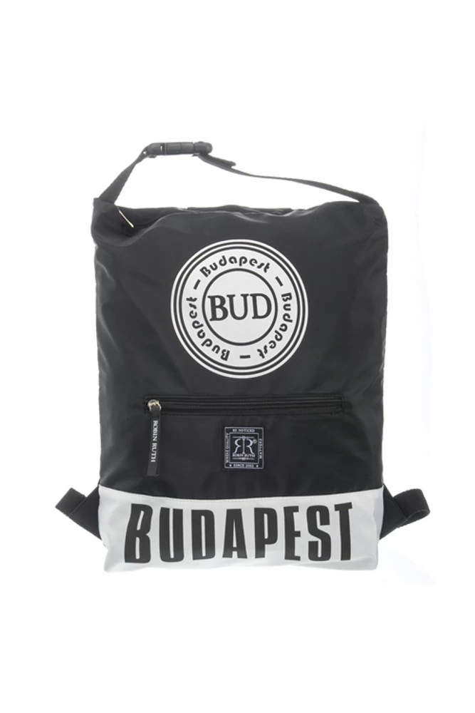 A Budapest mintás hátizsák széles pántja kényelmes viseletet biztosít, mely állítható. Cipzárral összezárható. Kézitáskaként is használható, pántja állítható.