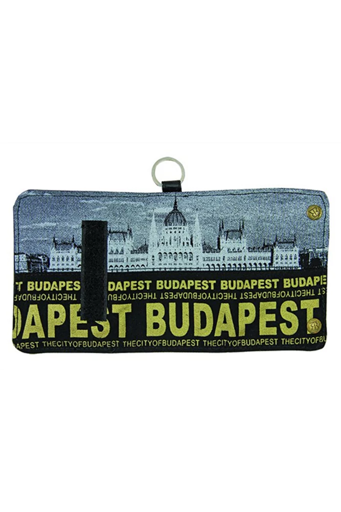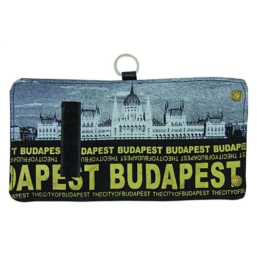 Unisex, Robin Ruth márkájú pénztárca, melyen fekete színű alapon, arany színnel jelenik meg a "Budapest" és a "The city of Budapest" felirat. A pénztárca felső részén fővárosunk egyik legfontosabb épülete, a Parlament sejteti Budapest turisztikai jelentőségét. A Budapest mintás pénztárca több rekeszből áll, aprópénz és papírpénz tárolásához is ideális. Tépőzárral záródik.